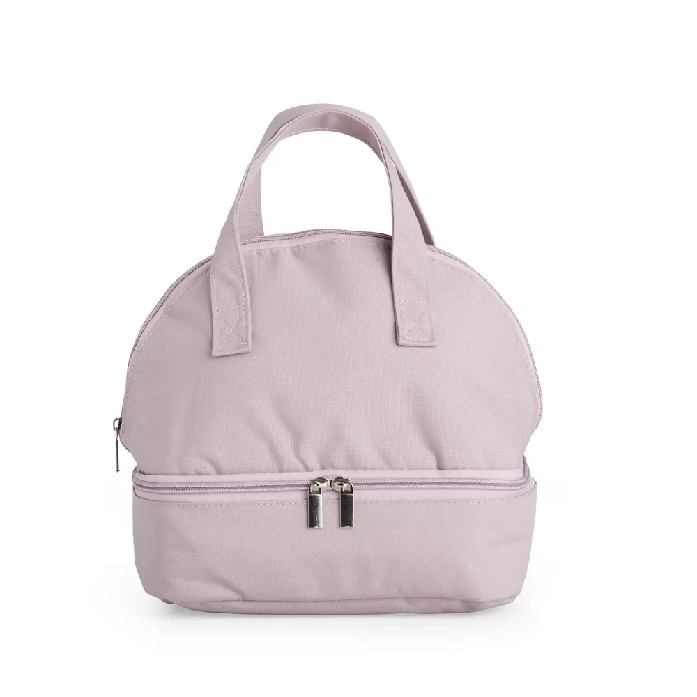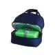 Bolsa térmica dupla em oxford com dois compartimentos térmicos isolados, capacidade de 6 litros. Contém alças de mãos.
