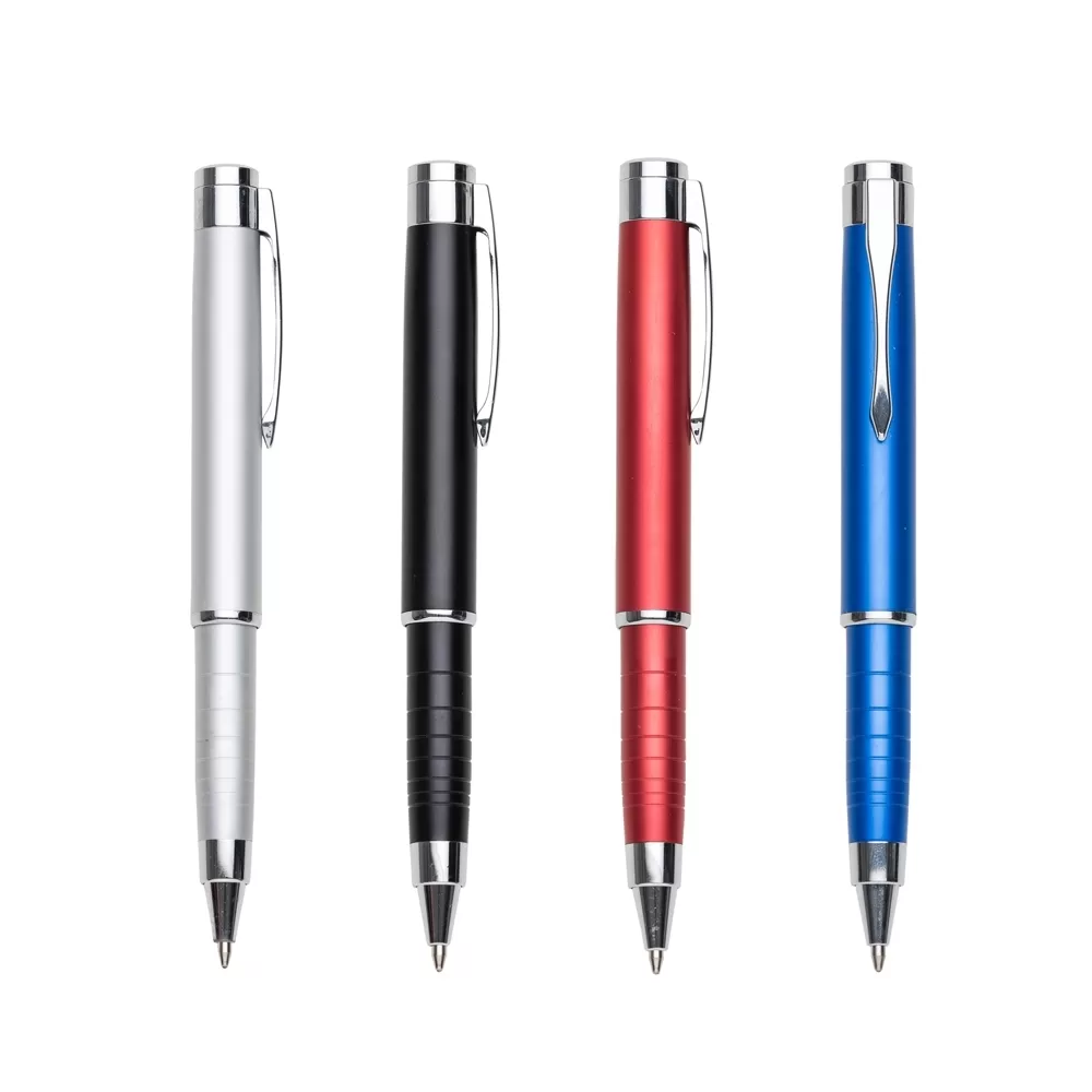 Caneta semimetal retrátil de corpo colorido com detalhes Prata.