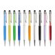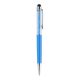 Caneta de plástico com funcionalidade de tela sensível ao toque e adornos em cristal, ativada girando e com tinta esferográfica azul de 1mm