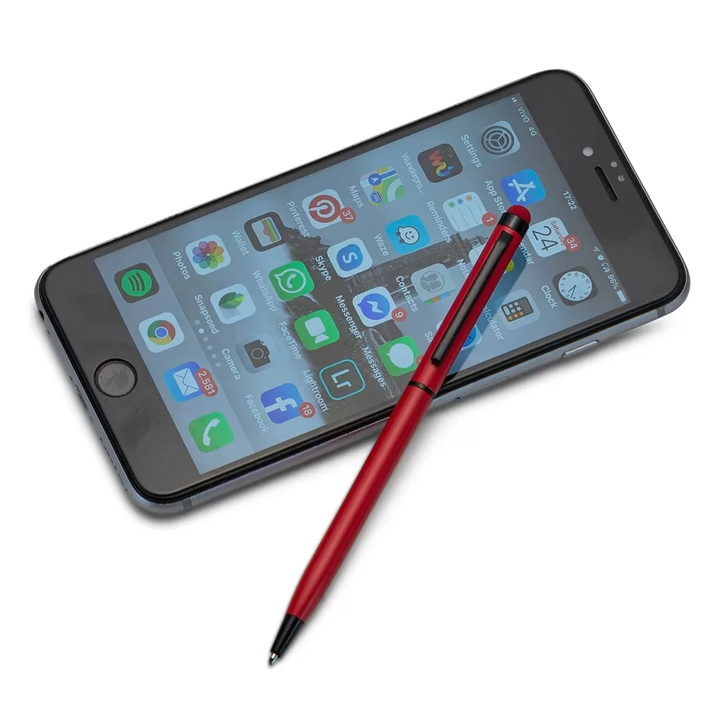 Acompanha caneta metálica com borracha touch e detalhes em preto