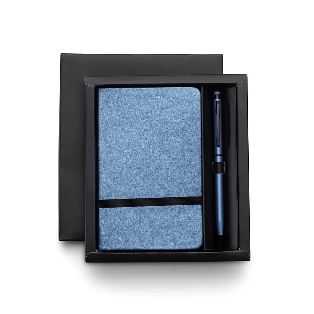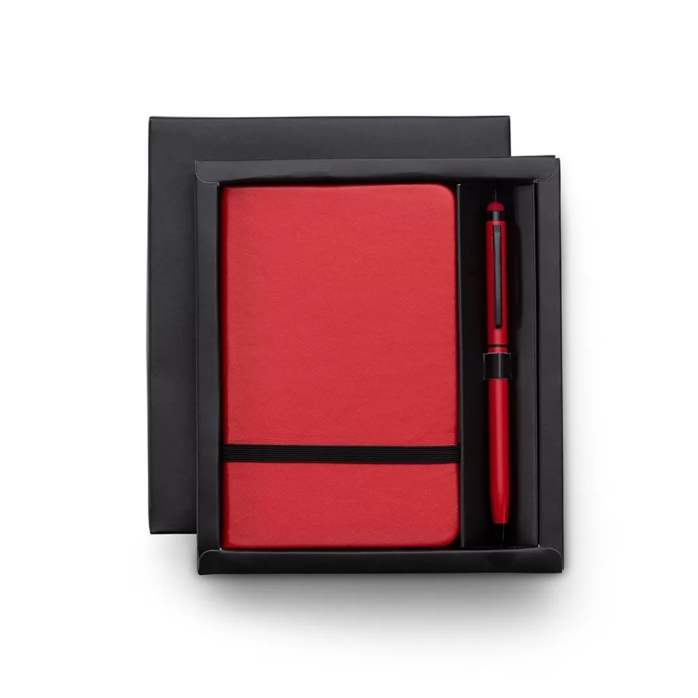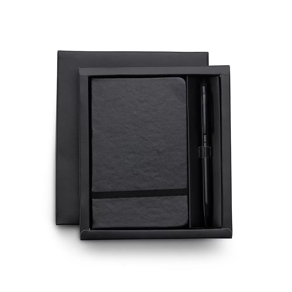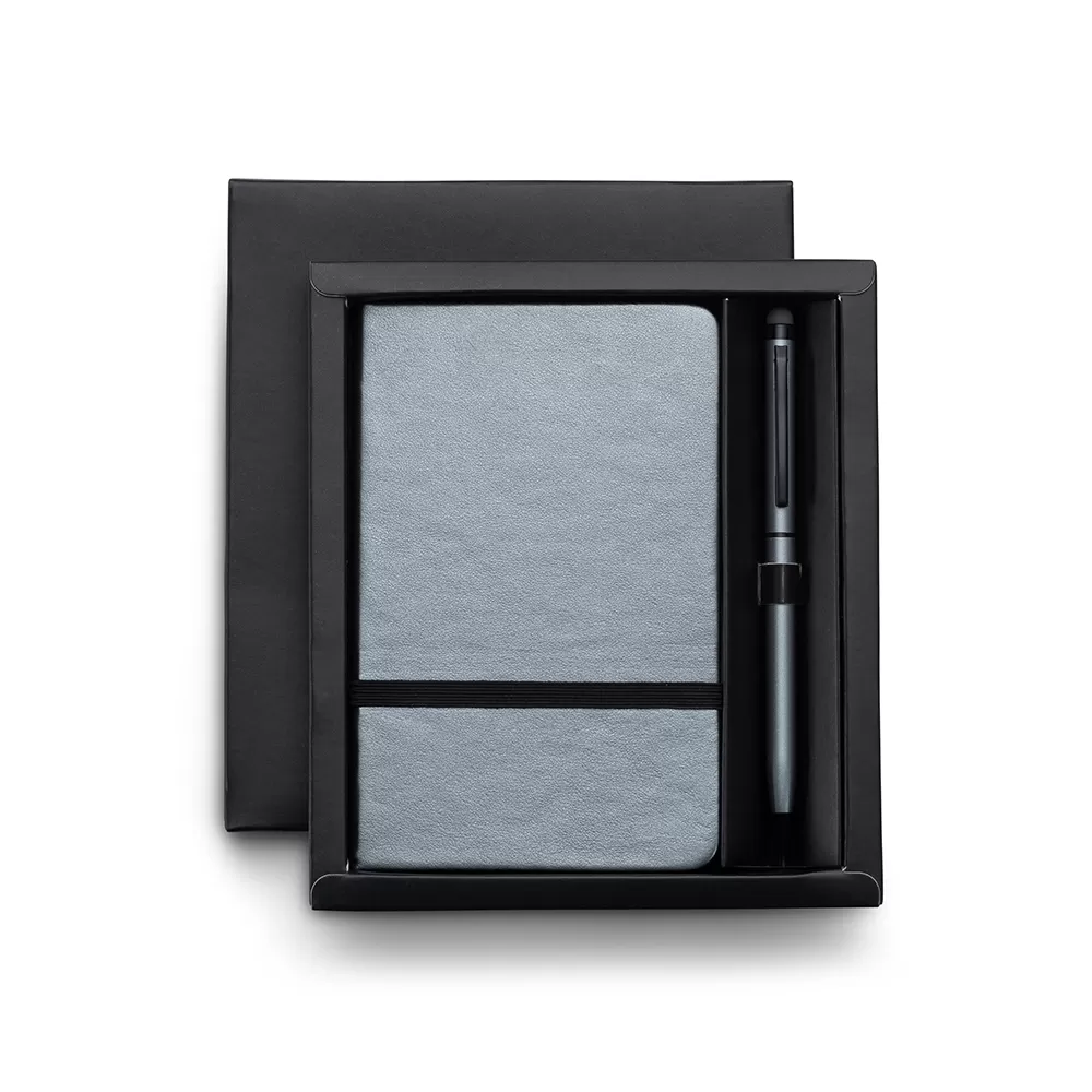 Kit executivo com caderneta tipo Moleskine e caneta touch em estojo de Papelão