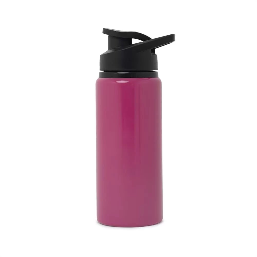 Squeeze alumínio de 600ml com pintura brilhante. Squeeze com tampa plástica rosqueável, alça e tampa protetora para o bocal.