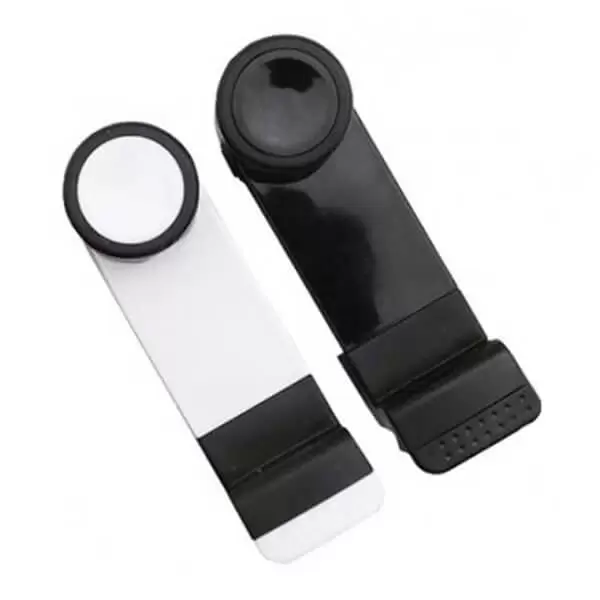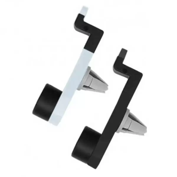 Para utilizar basta encaixar o suporte cinza traseiro no painel de ar do veículo e regular o tamanho desejado puxando pelas laterais.